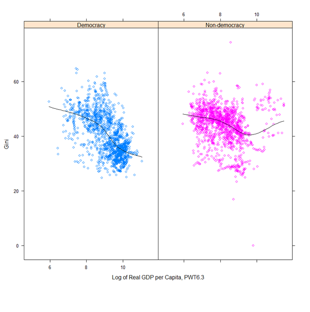 (Mostly an excuse to play with the Standardized Worldwide Income Inequality Database, compiled by Frederick Solt, which I just discovered. This post also belongs, loosely speaking, to my long-running series on the quantitative history of political regimes. R code for everything in this blogpost available in this Git repository; you would need to download the dataset separately).